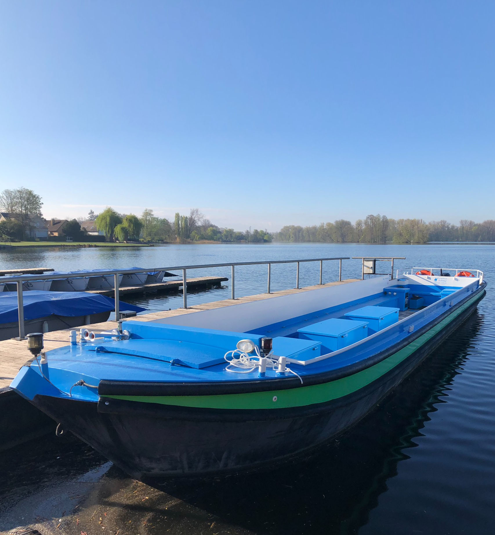 De uiterst stille elektrische boot (voor maximum 50 personen) is beschikbaar vanaf half april tot half september. Op zon- en feestdagen vaart de boot van de kade naar de Eendenkooi en terug op vaste uren (zie openingsuren).